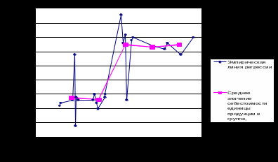 | Помесячное значение себестоимости продукции, руб. | Производительность труда на 1 рабочего, тыс. руб./.раб. |