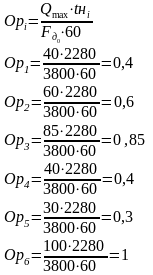 O i – принятое количество единиц оборудования, занятого выполняемой i- ой операции;