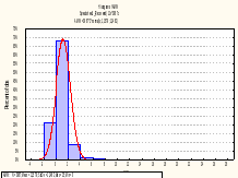 При проведенні первинного статистичного аналізу було обчислено статичні характеристики такі, як математичне сподівання, середнє квадратичне відхилення, коефіцієнт ексцесу та асиметрії, довірчі інтервали та визначено закони розподілу.