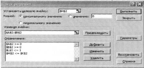 После выполнения поиска решений получим модель потребительского вида представленную в табл. 2