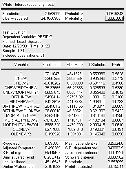 Проверим скорректированную модель на наличие гетероскедастичности с помощью теста Вайта