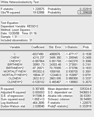 В моей курсовой работе я построила регрессионную модель по реальным данным. Я разбиралась с моделью зависимости общей численности населения от показателей рождаемости, смертности и численности пожилого населения, их влиянием друг на друга и на объясняемую переменную. Так как целью моей работы являлось проверить, как работают на практике тесты Уайта и Бреуша-Пагана-Годфри и Парка, то я использовала пространственные данные, которые позволяют наиболее наглядно проиллюстрировать проблему гетероскедастичности и способы ее устранения.