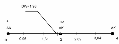Делаем вывод об отсутствии автокорреляции, т.к. значение статистики D-W в данном случае близко к 2.