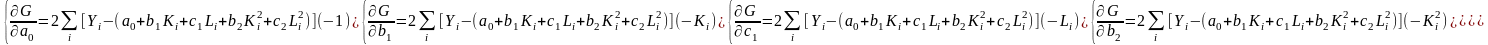 Y = a0 + b1K + c1L + b2K2 + c2L2