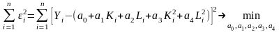 где K – затраты капитала; L – расходы по заработной плате. И функция неувязок имеет вид