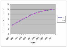 Рис.1 Графическое представление результатов аппроксимации производственной функции