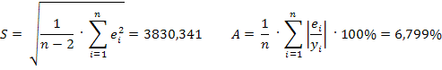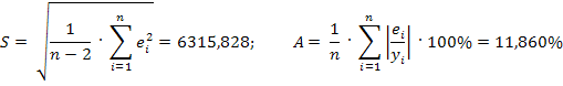 | Y-пересечение | -64314,412 | 2390,342 | -26,906 | 1,49932E-21 |