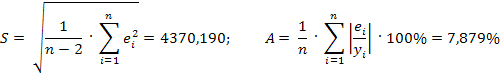Модель имеет высокие показатели среднеквадратической ошибки и средней ошибки аппроксимации, но может быть использована для прогнозирования.