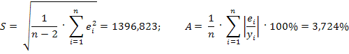 Для оценки точности каждого прогноза рассчитаем среднюю относительную ошибку прогноза по формуле: