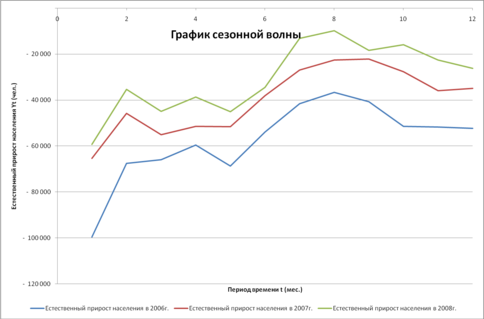 Исходя из показателя средней относительной ошибки прогноза, можно сделать вывод о том, что показатель естественного прироста населения наиболее точно прогнозируется рядом Фурье.