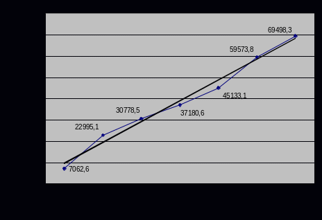Линия тренда на рис. 10.1 – это долговременная ряда динамики. Она характеризует основную тенденцию его развития. Можно сделать вывод, что ВРП в Чувашской республики в среднем стабилен и возрастает благодаря росту численности населения.