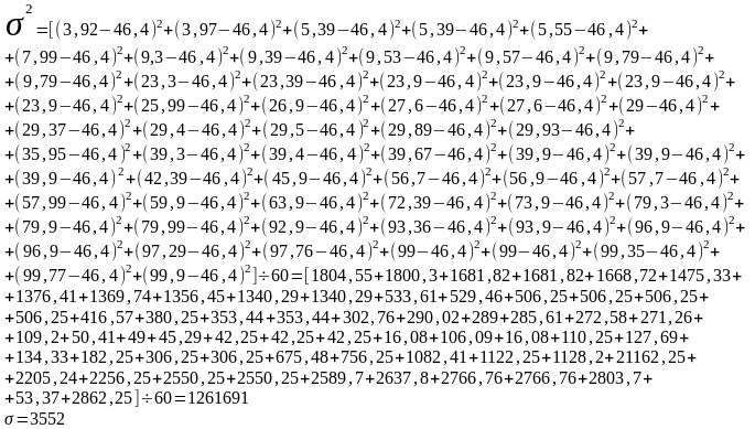 При построении рядов с помощью среднего квадратического отклонения, я для таблиц с различными данными выявила следующие ряды распределения: