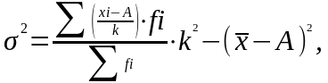 А - условный нуль, в качестве которого удобно использовать середину интервала, обладающего наибольшей частотой;