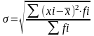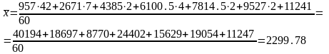 где xi- значение середины интервалов; fi-число значений.
