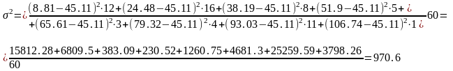 6. Рассчитаем дисперсию по средней арифметической по формуле (5.6):