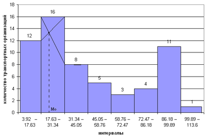 - нижняя граница модального интервала; i – величина модального интервала;