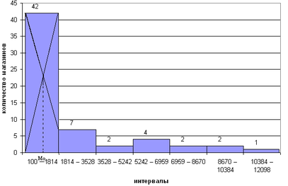 Вычислив моду для группировки магазинов по розничному товарообороту, млн. руб., я обнаружила, что наиболее часто встречается товарооборот суммой 1034,91 млн. руб.