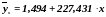 Итак, получилось, что а0=1,494, а а1=227,431. Нас интересует именно параметр а1, показывающий изменение результативного признака при изменении факторного признака на единицу.