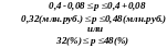 Вывод. С вероятностью 0,683 можно утверждать, что в генеральной совокупности организаций региона доля организаций с средним уровнем производительности труда 264 тыс.руб. и более будет находиться в пределах от 32% до 48%.