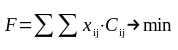 ij удельные произведенные затраты на перевозку единицы груза, i=1,4; j=1,4;