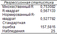 Вывод: анализ данной однофакторной модели показал, что она имеет низкую описательную силу. Выявлено наличие слабой связи между показателями среднемесячной денежной заработной платой рабочих и служащих и розничным товарооборотом государственной и кооперативной торговли на душу населения.