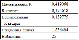 Коэффициент адекватности модели рассчитываем при помощи электронных таблиц Excel, используя надстройку. Анализ данных и получаем следующие значения: