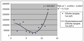 Проанализировав, показатели динамики я пришла к выводу, что развитие происходит с переменным ускорением. Таким образом, тенденция описывается параболой третьего порядка:
