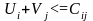 Находим потенциалы поставщика и потребителя, пользуясь первым условием оптимальности плана Ui + Vj < Cij