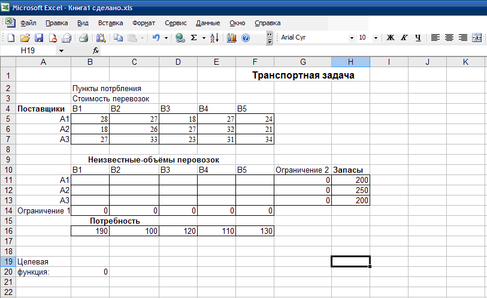 2.6 Применение возможностей электронных таблиц при решении транспортной задачи