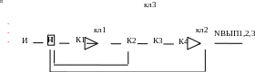 В качестве типовой математической схемы применяется Q-схема, состоящая из одного источника (И), накопителя (Н), четырех каналов (К1, К2, К3, К4), двух клапанов (рис. 2). После генерации заданий в источнике И, следует их запуск при помощи дисплея, канал К1, работая на нем 5535 сек. После запуска задание поступают в накопитель Н, а затем в клапан 1, который управляется каналом К2. Если в канале К2 выполняется задание с более высоким приоритетом, то задание поступает в накопитель Н. Если канал К2 свободен, или обрабатывается задание с более низким приоритетом, то начинается обработка поступившего задания в течении 13040 сек. После обработки задание поступает в канал К3, где выводится на печать в течении 3513 сек. Затем задание поступает в канал К4, где производится анализ задания в течение 6523 сек. Клапан 2 принимает задания от канала К4, управляется соответствующим каналом, при этом выполнение задания либо заканчивается NВЫП1,2,3, либо отправляется в накопитель Н для повторной обработки.