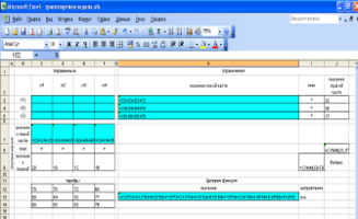 При введении зависимостей лист MS Excel в режиме просмотра формул имеет вид: