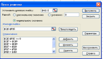 Окно "Поиск решения" после ввода всех необходимых данных задачи имеет следующий вид: