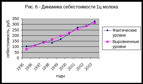 Таблица 4 – Динамика себестоимости 1ц молока в хозяйствах Орловского района за 1995-2003 годы.