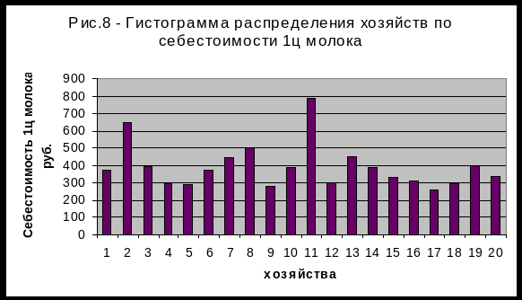 4. ПОСТРОЕНИЕ И АНАЛИЗ ВАРИАЦИОННОГО РЯДА ПО СЕБЕСТОИМОСТИ МОЛОКА.