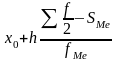 Медиана – это варианта, которая делит ряд на две равные части. Она определяется в интервальном ряду по формуле.