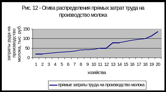 Таблица 20 – Ранжированный ряд по прямым затратам труда на производство молока.
