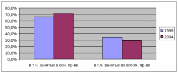 доля занятых во вспомогательном производстве сократилась на 0,05