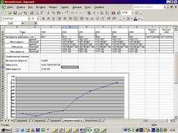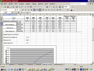 Графическое изображение фактического ряда и темпов роста демонстрирует, что отрицательная тенденция наблюдалась лишь в 1999г.- 2000г., но с 2001г. наблюдается резкая положительная динамика среднесписочной численности работников: (бурное оживление), поэтому прогнозирование по среднему темпу прироста может быть неадекватным, скорее требуется подбор кривой роста для более точного прогнозирования численности.