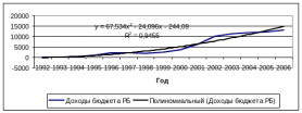 Динамика доходов бюджета Республики Бурятия в период с 1992г. по 2006 г. (в фактически действовавших ценах, млн. руб. (до 1998г. – млрд. руб.)).