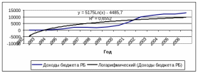 Произведя вышеназванные вычисления получим прогноз дохода бюджета на 2007 и 2008 годы: 11242.7 и 17484.9 млн. руб. соответственно. Ошибка прогноза при этом составляет 1819,4 млн. руб.