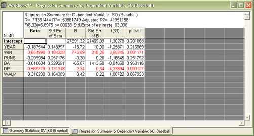 параметры модели βi (для данной модели существенными являются переменные WIN и DP):