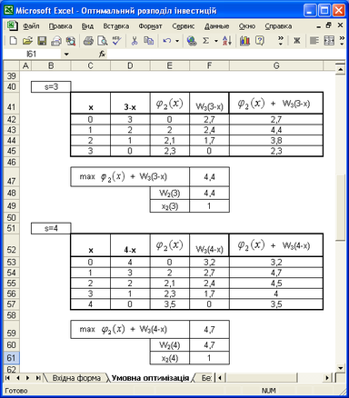 Проведення умовної оптимізації для другого підприємства за умови вкладання 3000 і 4000 умовних одиниць
