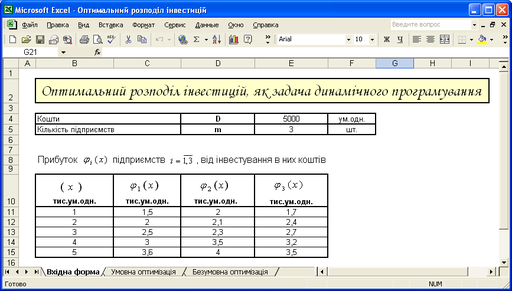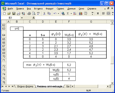 Проведення умовної оптимізації для другого підприємства за умови вкладання 5000 умовних одиниць