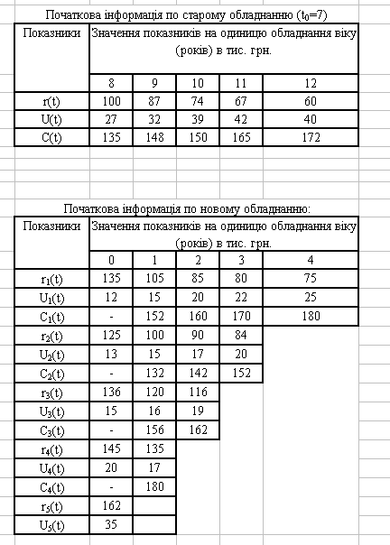С(t) – витрати на заміну одиниці устаткування віку t років (витрати на придбання, налагодження за винятком залишкової вартості старого встаткування).