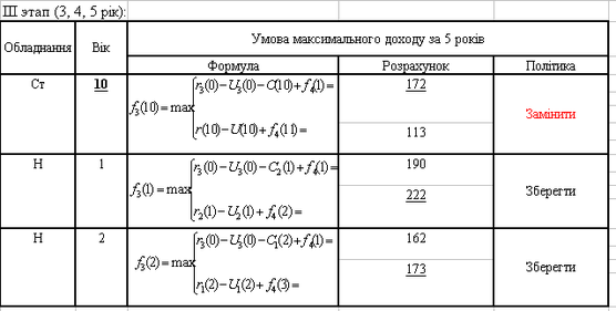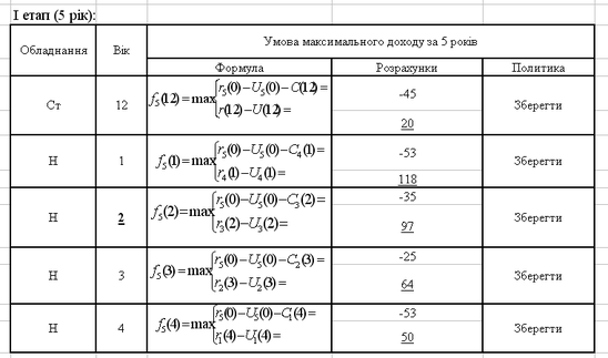Задачу будемо розглядати в п’ять етапів. Тобто в кожному році ми будемо шукати найоптимальніші варіанти заміни обладнання.