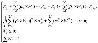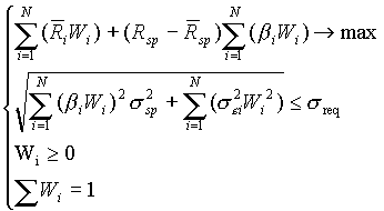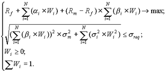 З використанням моделі Квазі-Шарп для розрахунку характеристик портфеля пряма задача набуває вигляду: