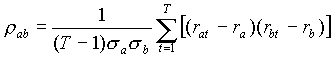 де rat, rbt — доходність цінних паперів а та b в період t