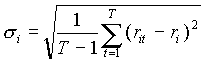 де (ri — Rf) — відхилення доходності цінного папера від безризикового;