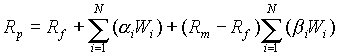 За моделлю Квазі-Шарп доходність портфеля цінних паперів — це середньозважена доходностей цінних паперів, що його складають: