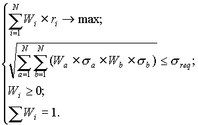 З використанням моделі Марковіца для розрахунку характеристик портфеля пряма задача набуває вигляд:
